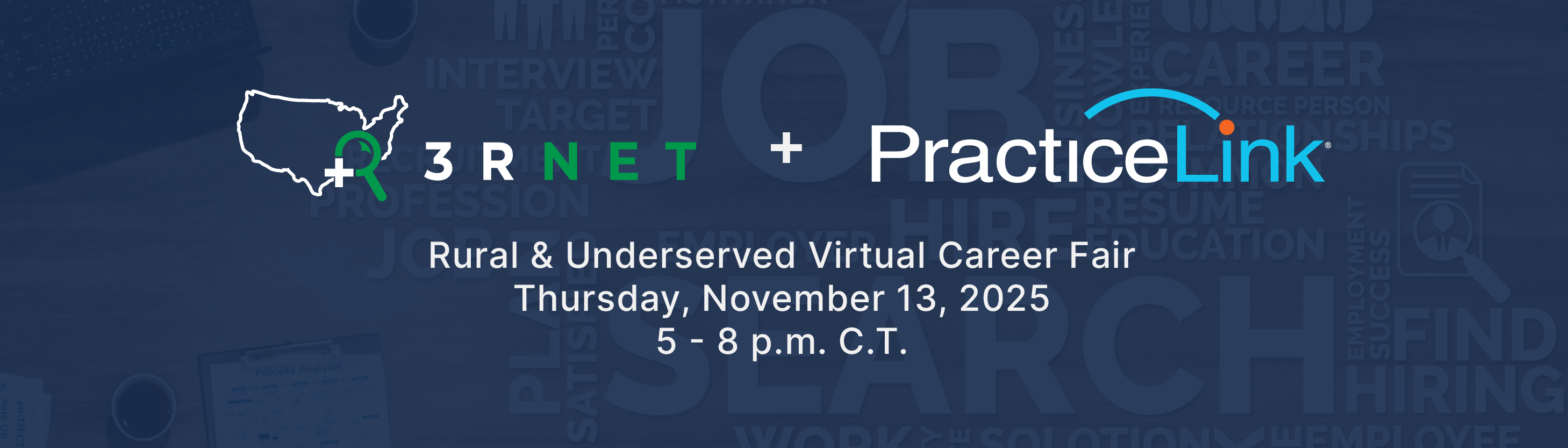 Connect with 3RNET Network Coordinators, who represent multiple rural- and underserved-focused job opportunities and organizations from across the U.S., during this live, virtual career fair. Discover what it’s really like to live and work in high-need, high-reward communities, and get answers to your location-specific job search questions.